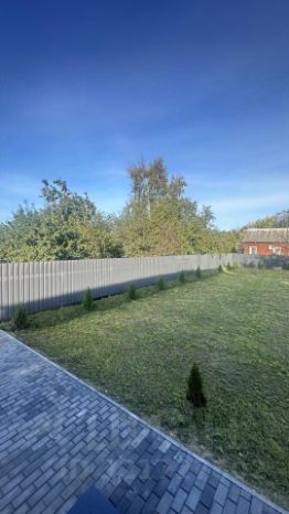 Полностью огорожен: по периметру забор из профлиста, фасадная часть красивый евроштакетник в шахматном порядке с кирпичными столбами.